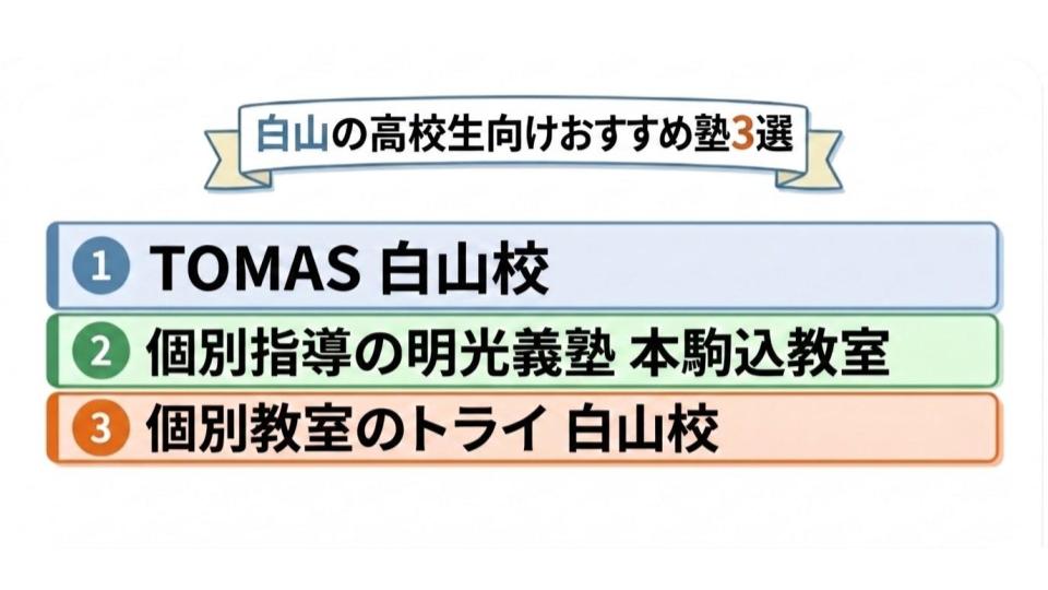 白山エリアで塾をお探しなら、「個別指導スクールIE」「ena」「東京個別指導学院」などが有力な候補です。