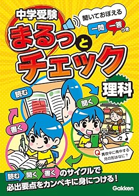 「中学受験まるっとチェック 理科:聞いておぼえる一問一答つき」は、視覚と聴覚を活用しながら学習できる問題集です。