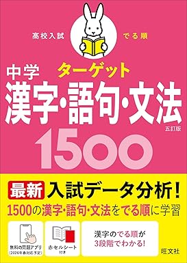 「でる順ターゲット 中学漢字・語句・文法1500」は、高校入試の頻出問題を厳選し、効率的に学習できる参考書です。