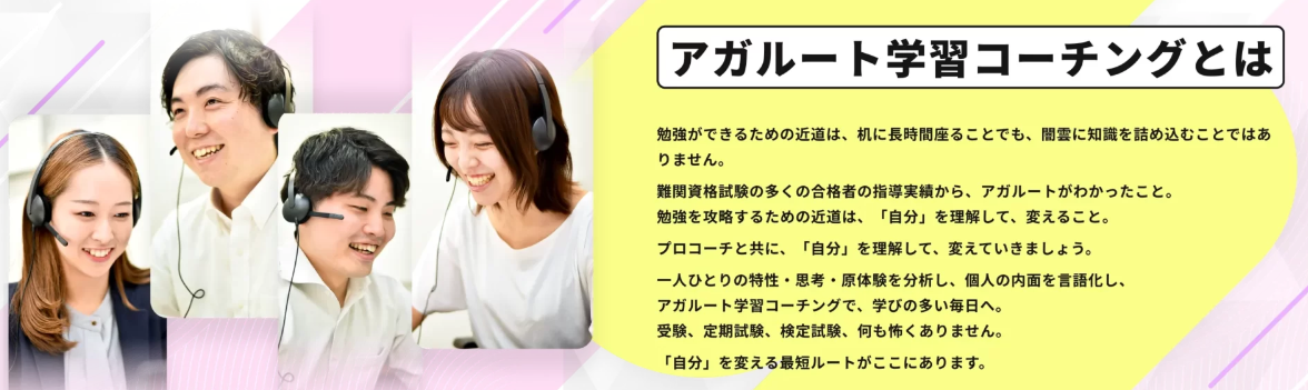 アガルート学習コーチングは、オンライン個別指導の中でも「コーチング」という指導方法をとっている塾です。