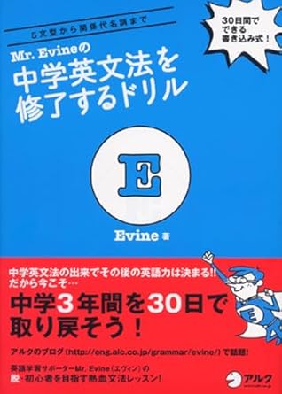 『Mr.Evineの中学英文法を修了するドリル』は、中学英語において重要な29項目を30日間で学習できる問題集です。