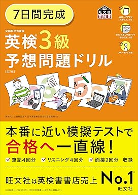 『7日間完成 英検3級 予想問題ドリル』は、一週間で英検3級の対策ができる問題集です。