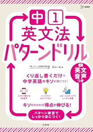 『中1英文法 パターンドリル』は、中学1年生で学習する文法に特化した学習ができる問題集です。