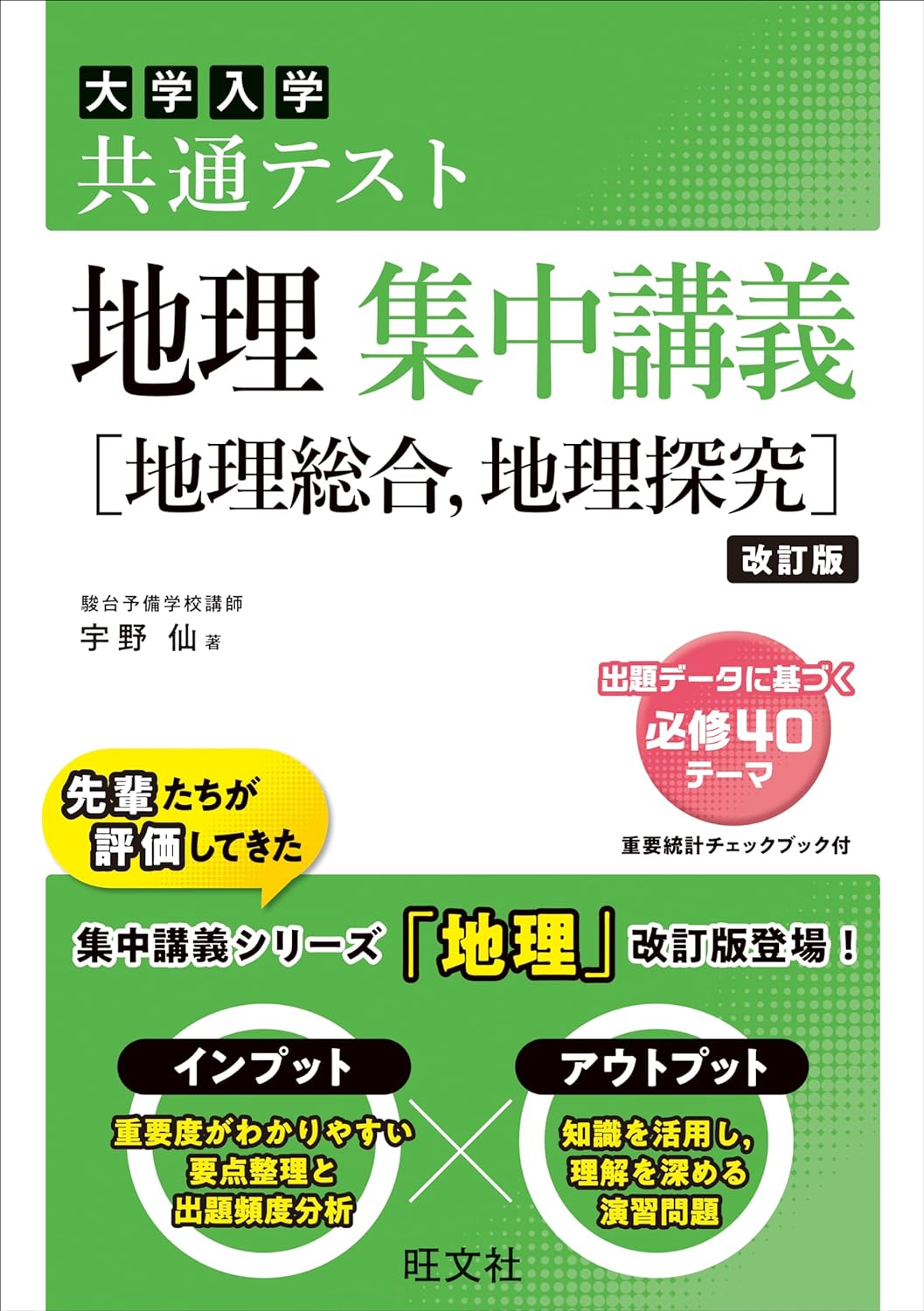 「共通テスト 地理 集中講義(旺文社)」は共通テストの出題傾向を分析し、大切な要点と共通テスト対策用の問題で構成されている参考書です。コンパクトな構成となっているため、短期間で学習できます。
