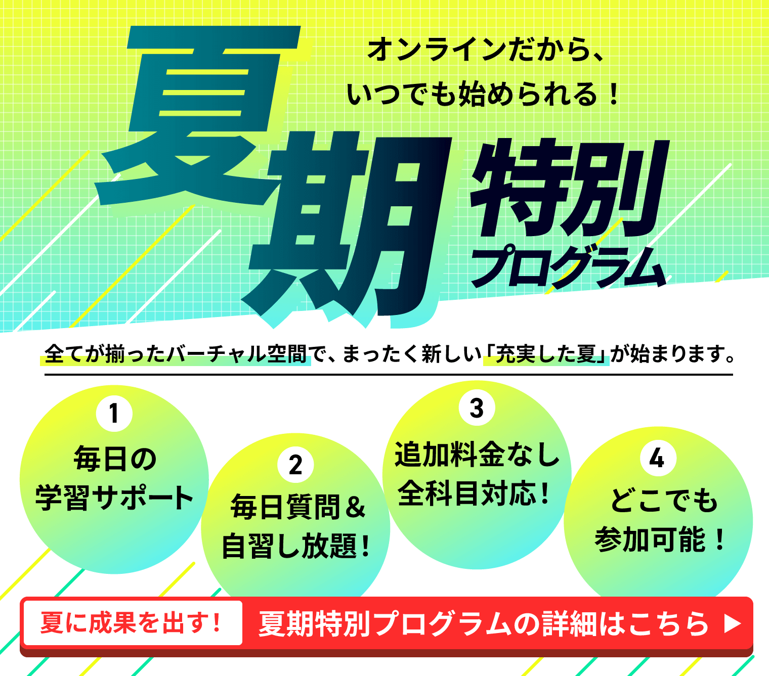 アガルート学習コーチングの夏期特別プログラムでは、バーチャル校で夏の学習をサポートします。