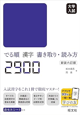 大学入試 でる順 漢字書き取り・読み方2900(旺文社)は、難関大を含む大学入試問題10年分を分析し、出題頻度の高い漢字がテーマ別・出題形式別などで分類されている参考書です。