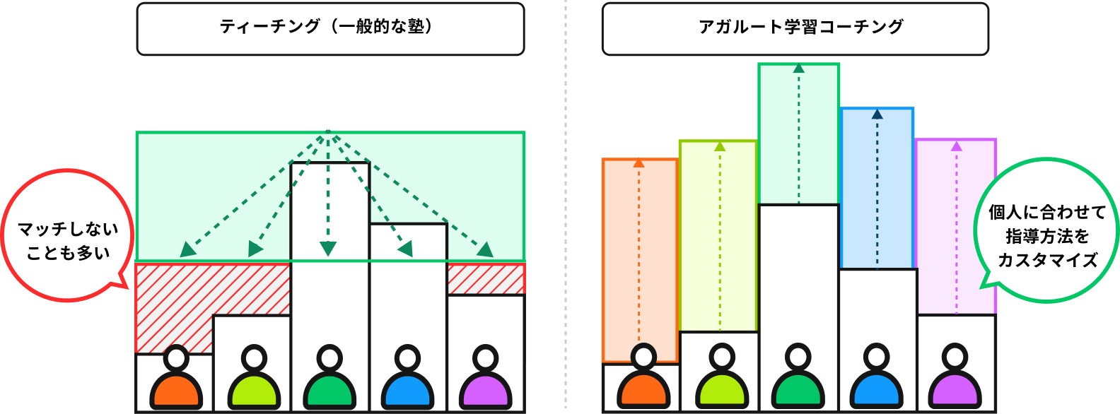 | アガルート学習コーチング | 他のコーチング事業者 | 予備校 | 集団指導塾 | 個別指導塾 | 家庭教師 | |