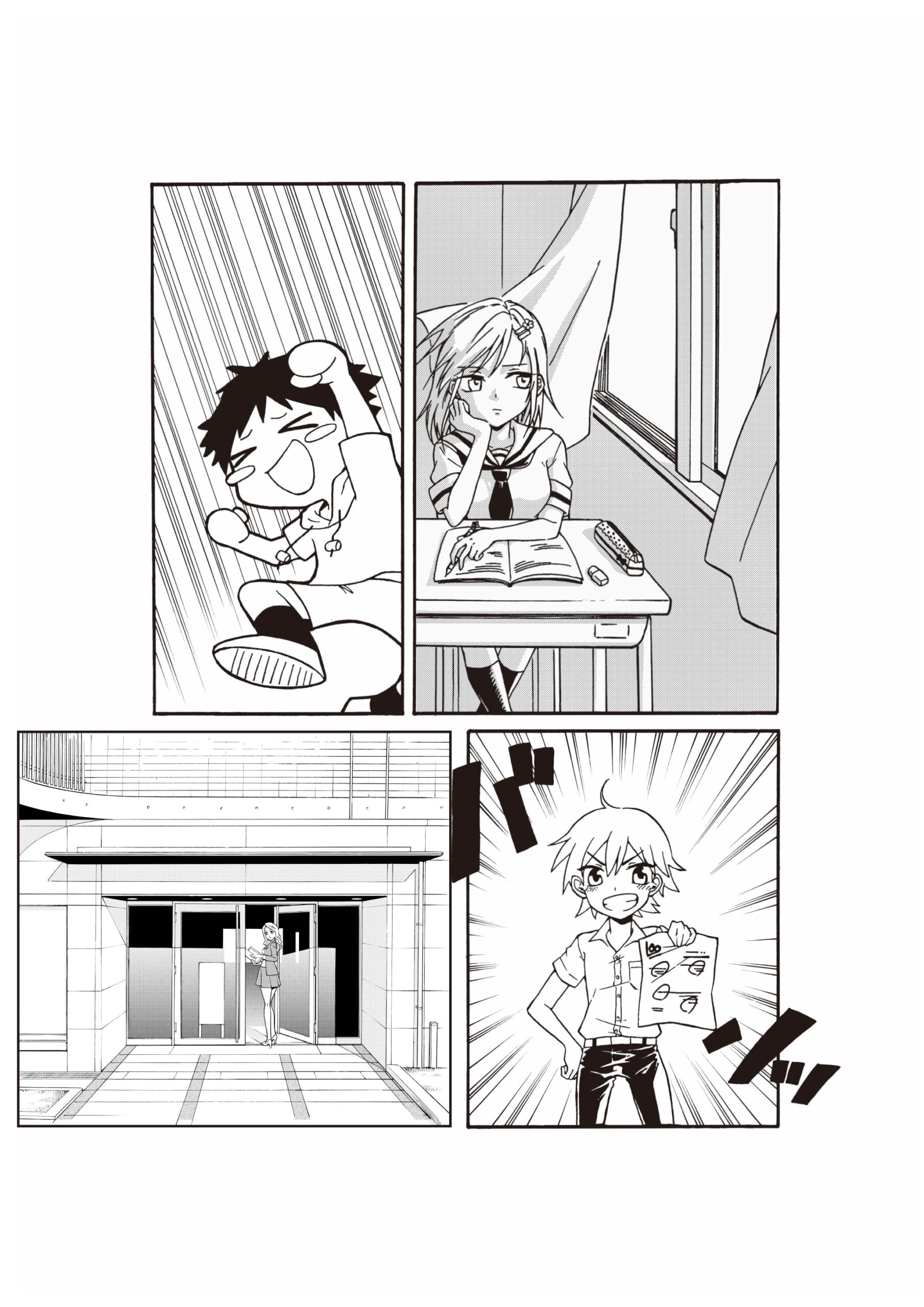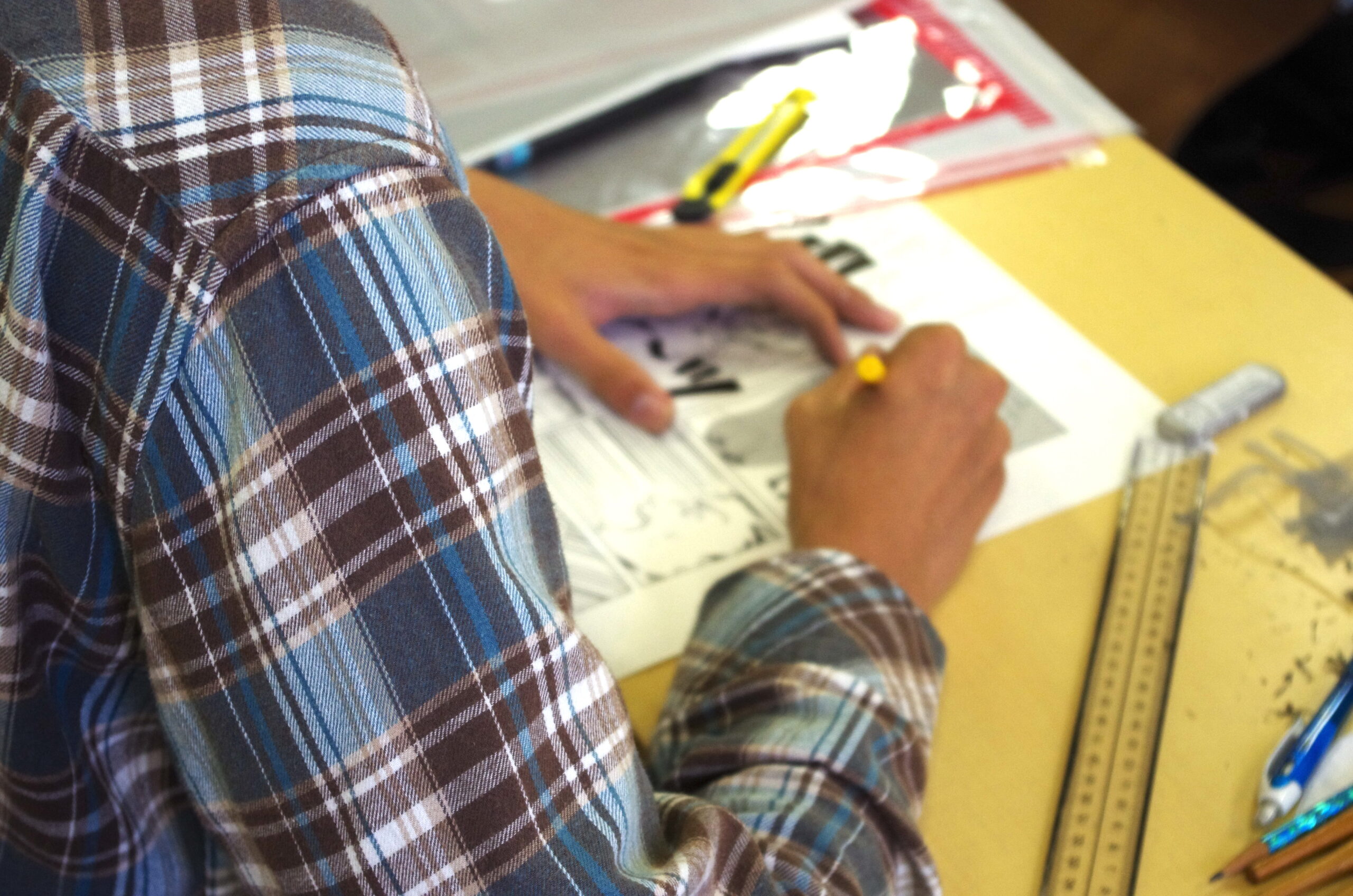 ベタやトーン貼り、トーン削り、スピード線など、漫画を描く為に必要な技能についての実技試験です。