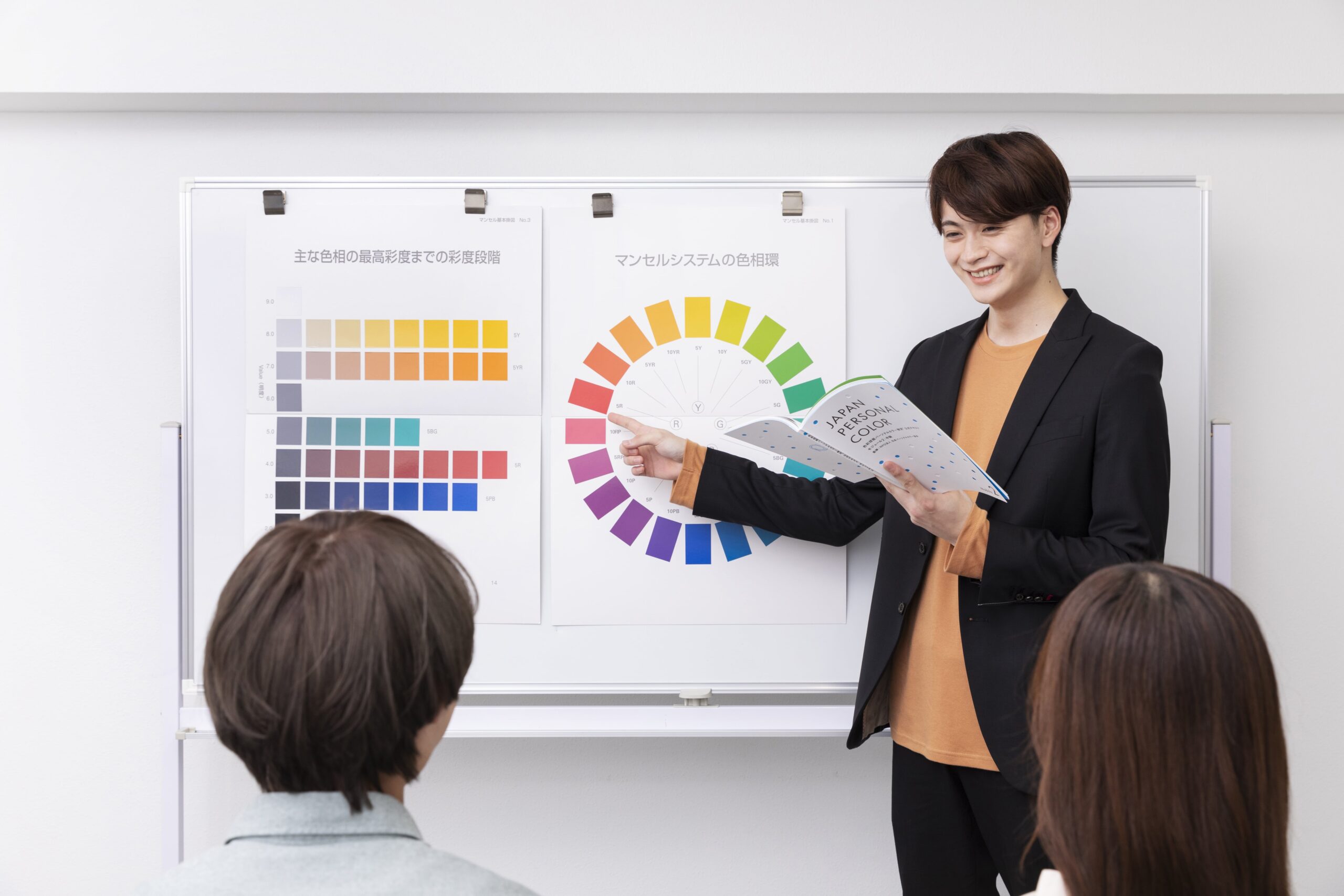 色が好きな方や、パーソナルカラー診断を受けて興味を持った方などご自身の美の知識として学んでみたい方をはじめ、最近では美容師やヘアメイク、ネイリスト、BA、ブライダル、インフルエンサーなど様々なプロフェッショナルからも「パーソナルカラーを仕事に取り入れたい」という需要が高まっています。