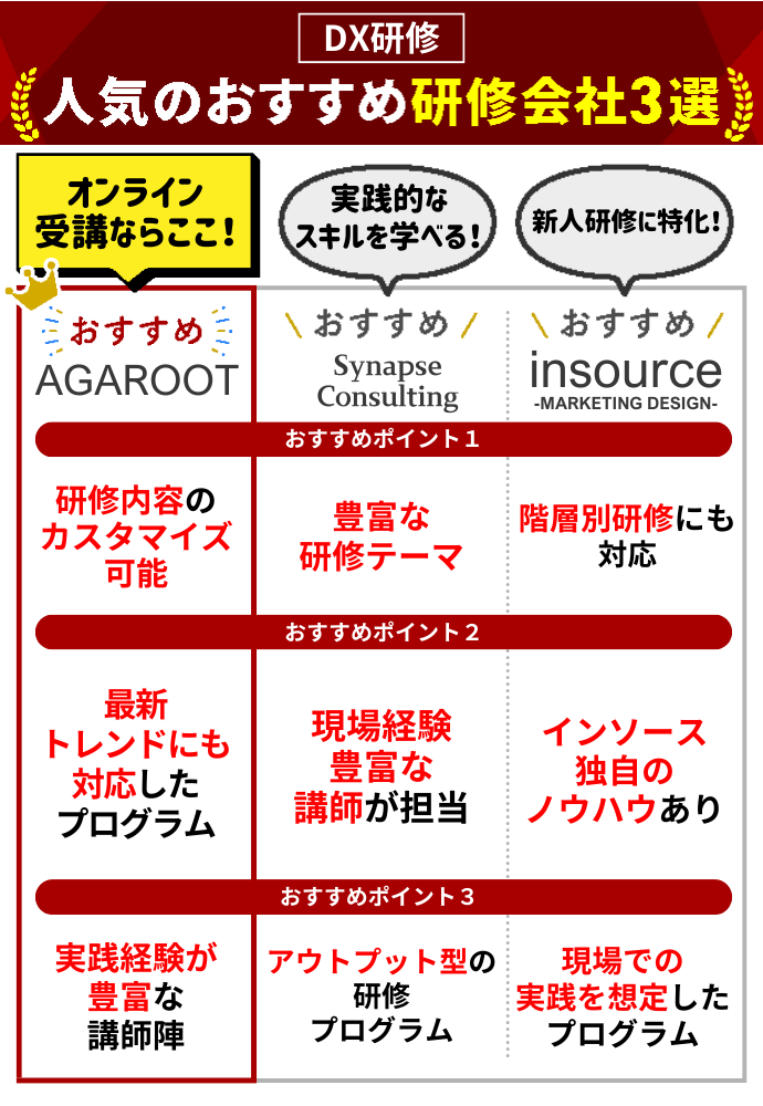 今回は、DX研修を実施しているおすすめの会社を紹介します。それぞれの特徴や概要にも触れるので、ご参考ください。