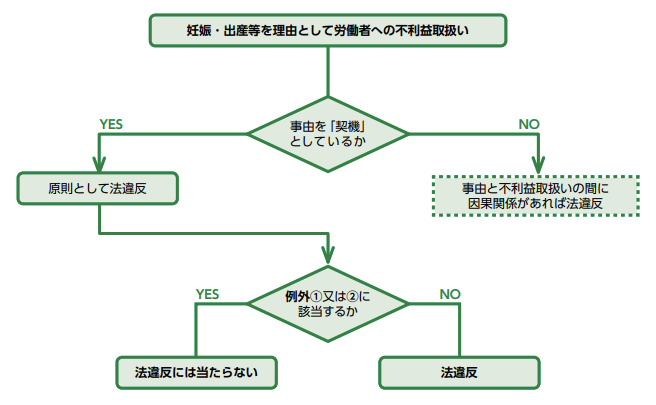 しかし、妊娠や出産、育児休業の取得という理由のみで不当に待遇を変更することはハラスメントにあたります。
