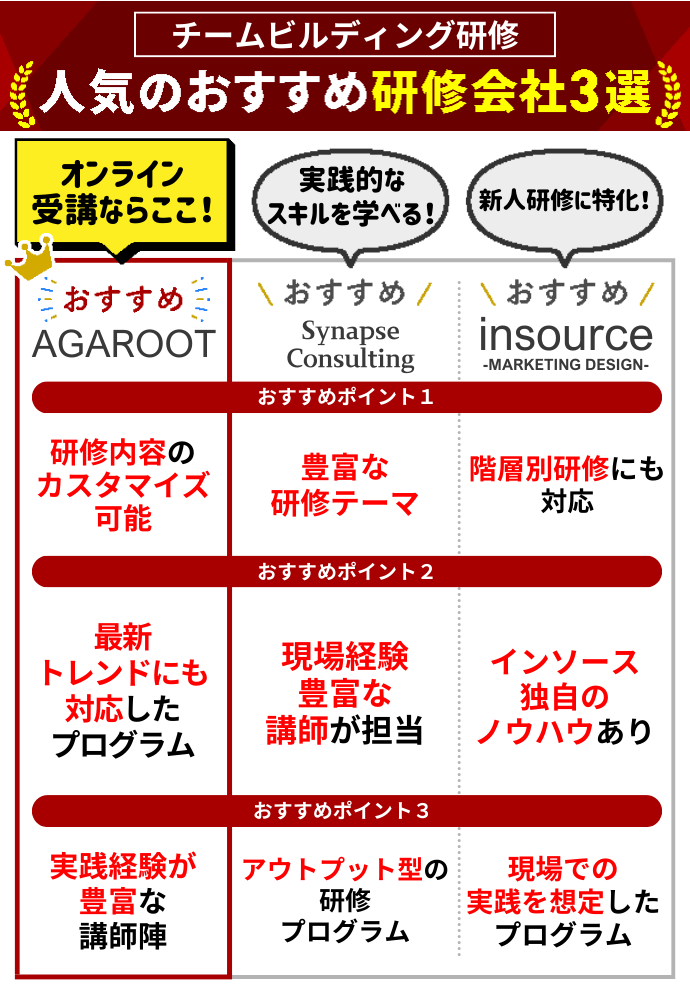 今回は、チームビルディング研修でおすすめの会社を13社解説します。