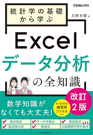 | 特徴 | ・カラー図版で読みやすい ・Excelサンプルが付属している ・ビジネスの現場で役立つデータサイエンスの知識を学べる |