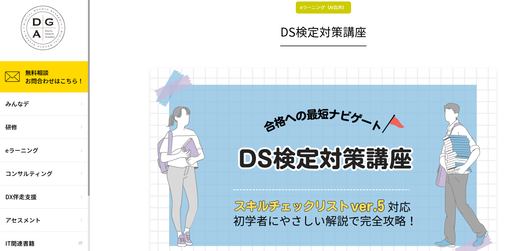 | ディジタルグロースアカデミア | DS検定対策講座 | 9,900円 | 10時間49分 | 講義動画(AI音声) | 詳細は公式ページをご覧ください |