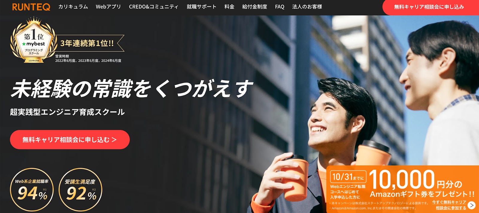 料金・費用が安いプログラミングスクール1位は、「RUNTEQ(ランテック)」です。