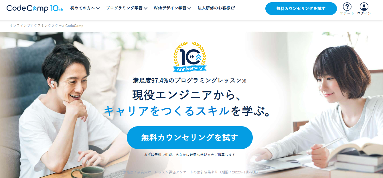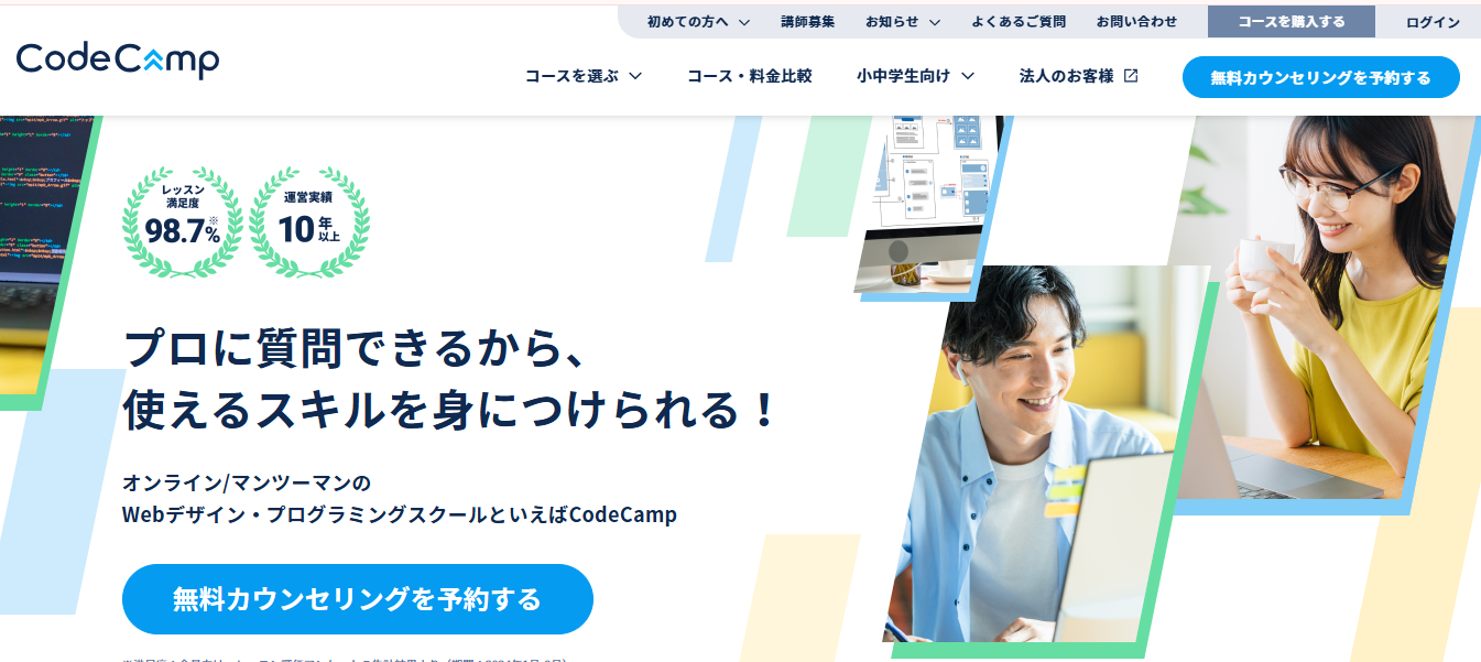 - CodeCamp(コードキャンプ)プロの指導でキャリア実現を支援するオンラインスクール
