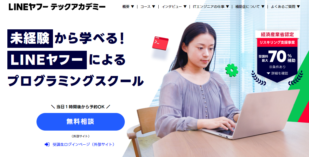 - LINEヤフーテックアカデミー|未経験から学べる!LINEヤフーの実践的プログラミングスクール