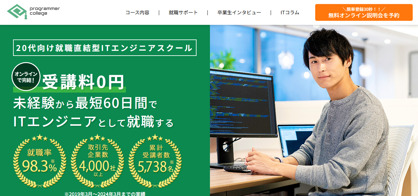 - プログラマカレッジ|20代向け就職直結型ITエンジニアスクール。最短60日でITエンジニアへ
