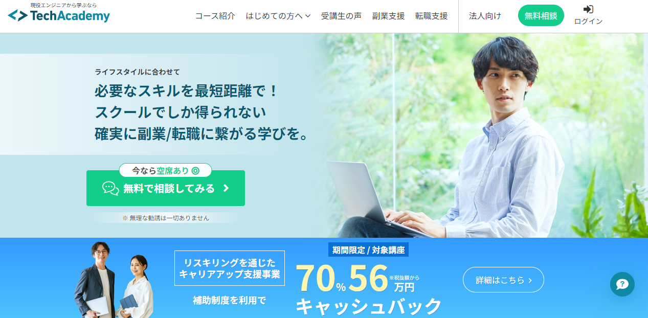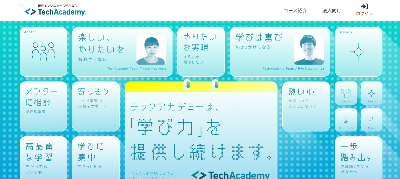 - TechAcademy(テックアカデミー)|現役エンジニアが教える、実践重視のプログラミングスクール