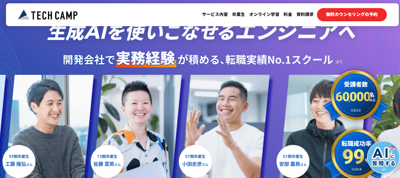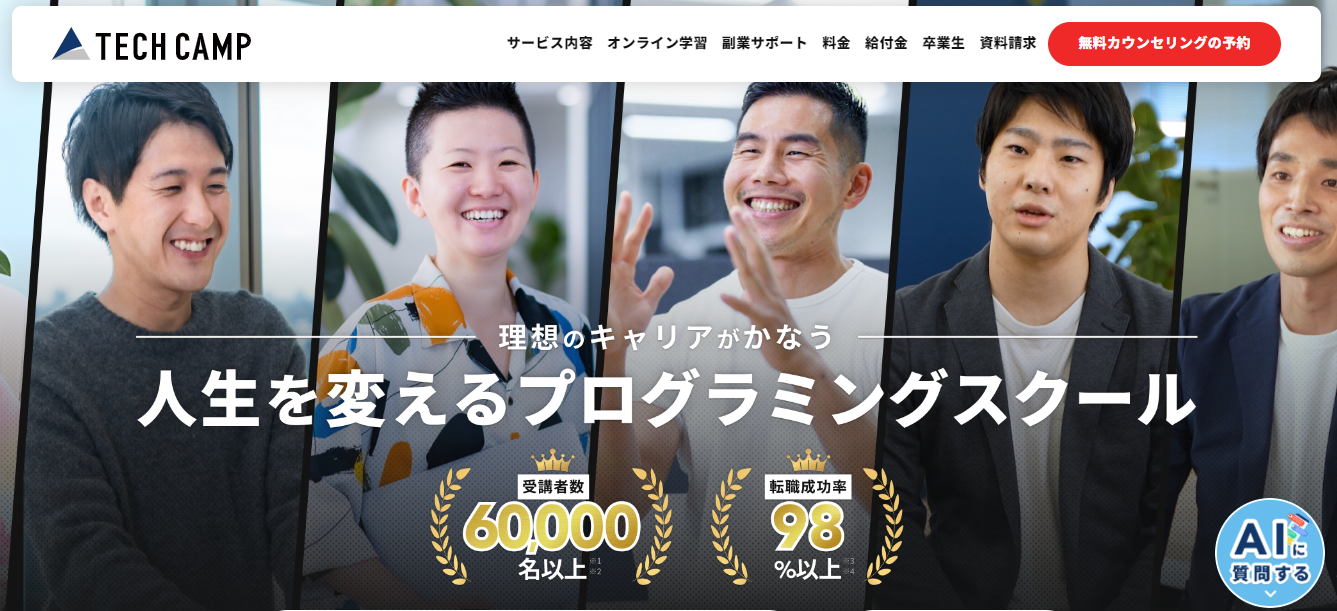 - TECHCAMP(テックキャンプ)|徹底サポートで未経験からITエンジニアへ!