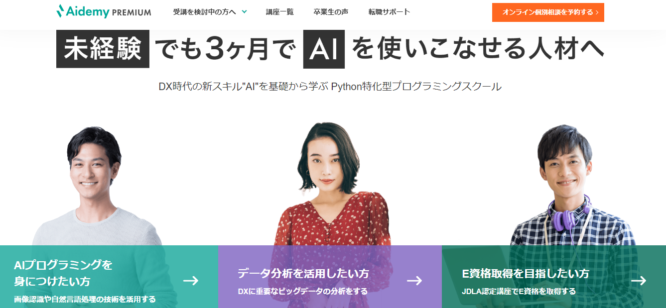 - Aidemy Premium(アイデミー)|未経験から3ヶ月でAIをマスター!Python特化型スクール