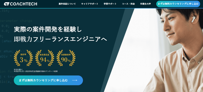 COACHTECH(コーチテック)は、未経験者からフリーランスエンジニアを目指すためのオンラインプログラミングスクールです。