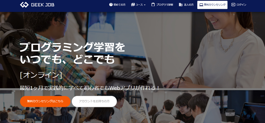 - GEEK JOB(ギークジョブ)|初心者も最短1ヶ月で就職までサポートするプログラミング学習