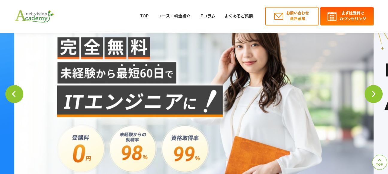 - ネットビジョンアカデミー|未経験から2ヶ月でエンジニア転職を実現!