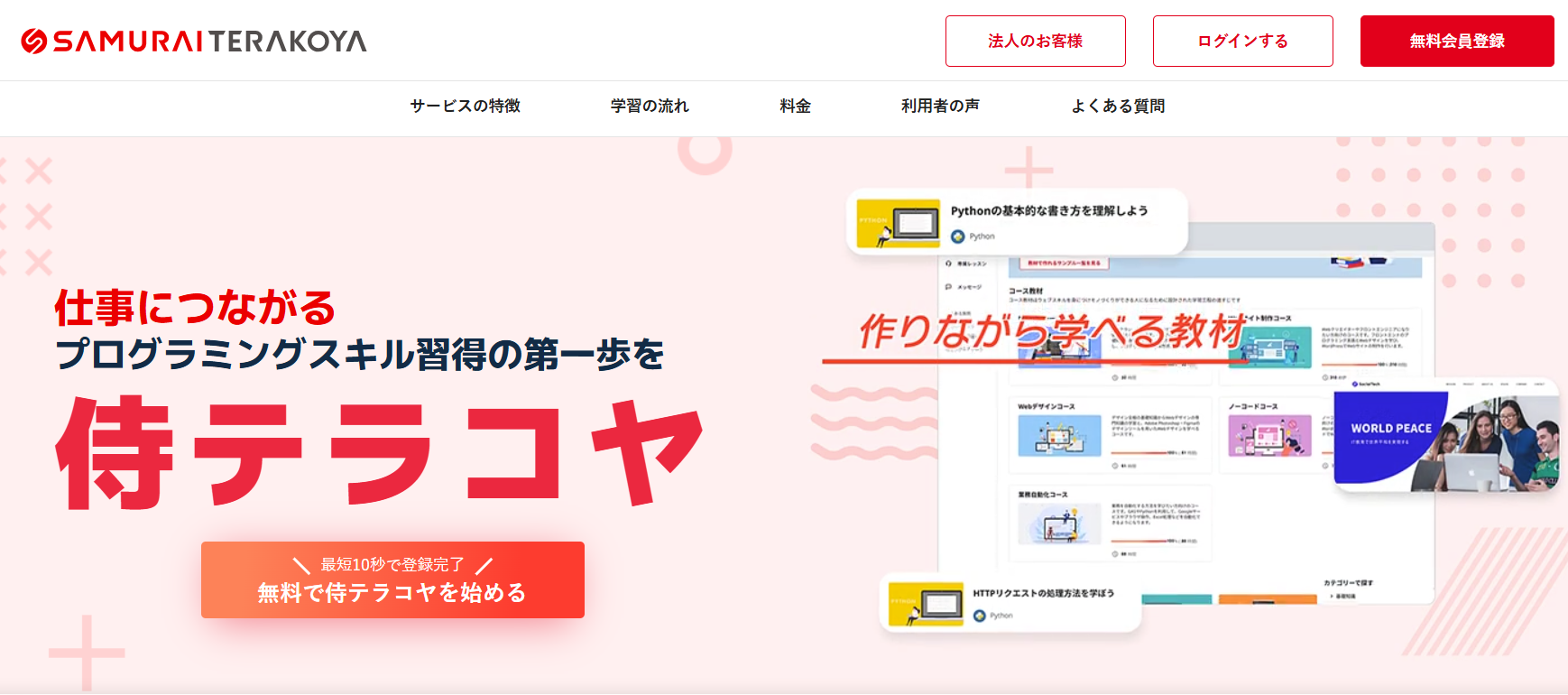 - 侍テラコヤ: 質問サポートで挫折を防止