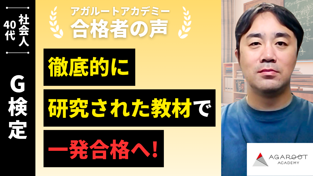 直近の試験日程まで3週間程度しかなく通学やテキストを開く学習をメインにすることは難しかったため、最短で合格に近づけるであろうオンラインで評判の高いアガルート様に頼ることとしました。合格特典も自らのモチベーションになると考えました。