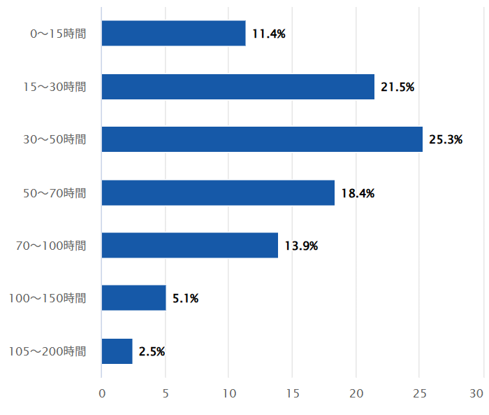 ちなみに、一般社団法人日本ディープラーニング協会が実施したアンケートでは、G検定合格者の25.3%の方が「30~50時間」の勉強時間だったと回答しています。