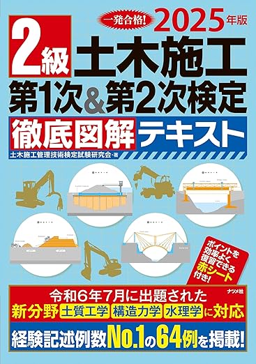 『2級土木施工 第1次&第2次検定徹底図解テキスト』は、一次・二次検定の全範囲を図解中心で視覚的に理解できる構成が特長のテキストです。