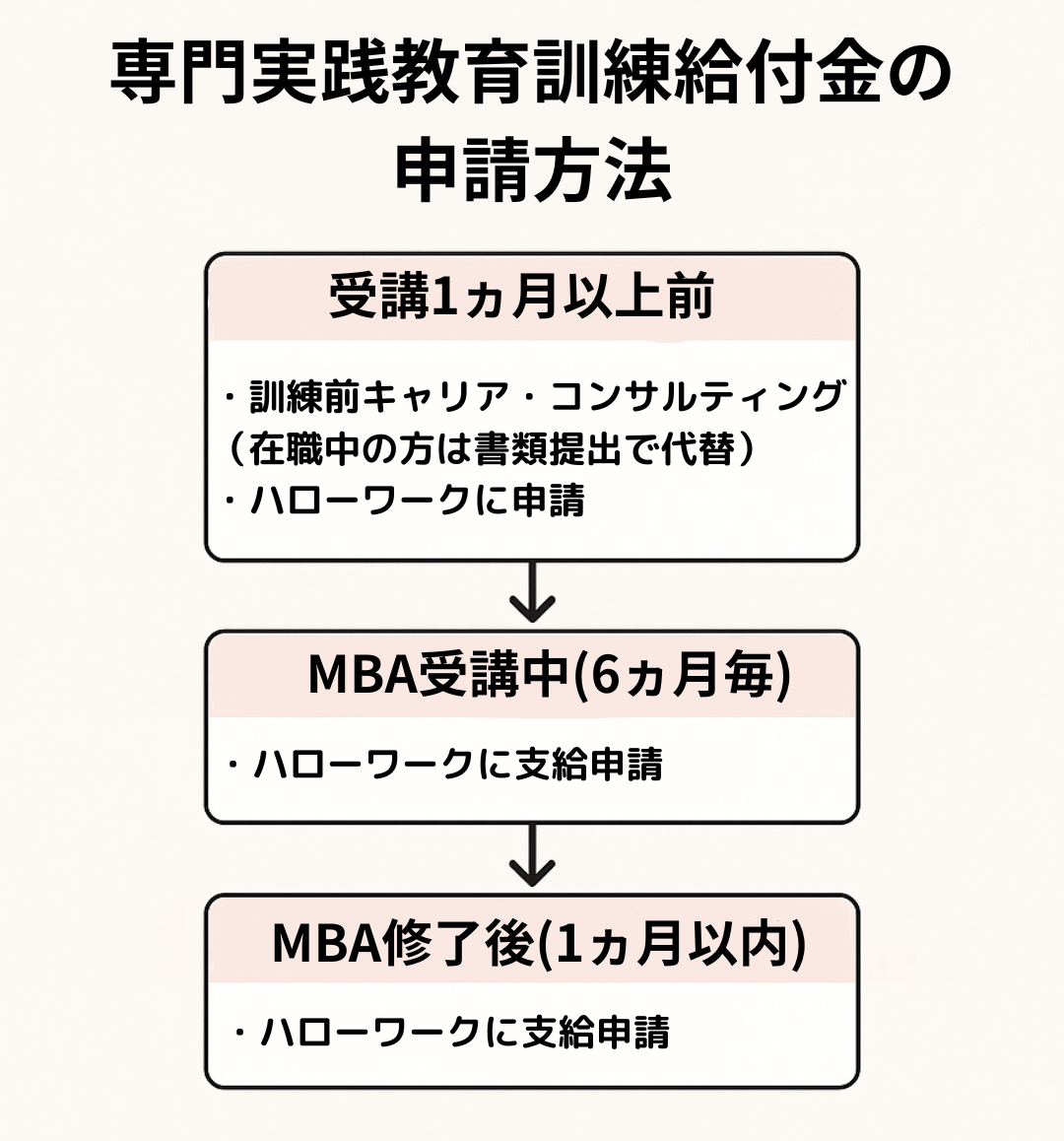 | MBA修了後 1ヶ月以内 | ハローワークに必要書類を揃え支給申請 |