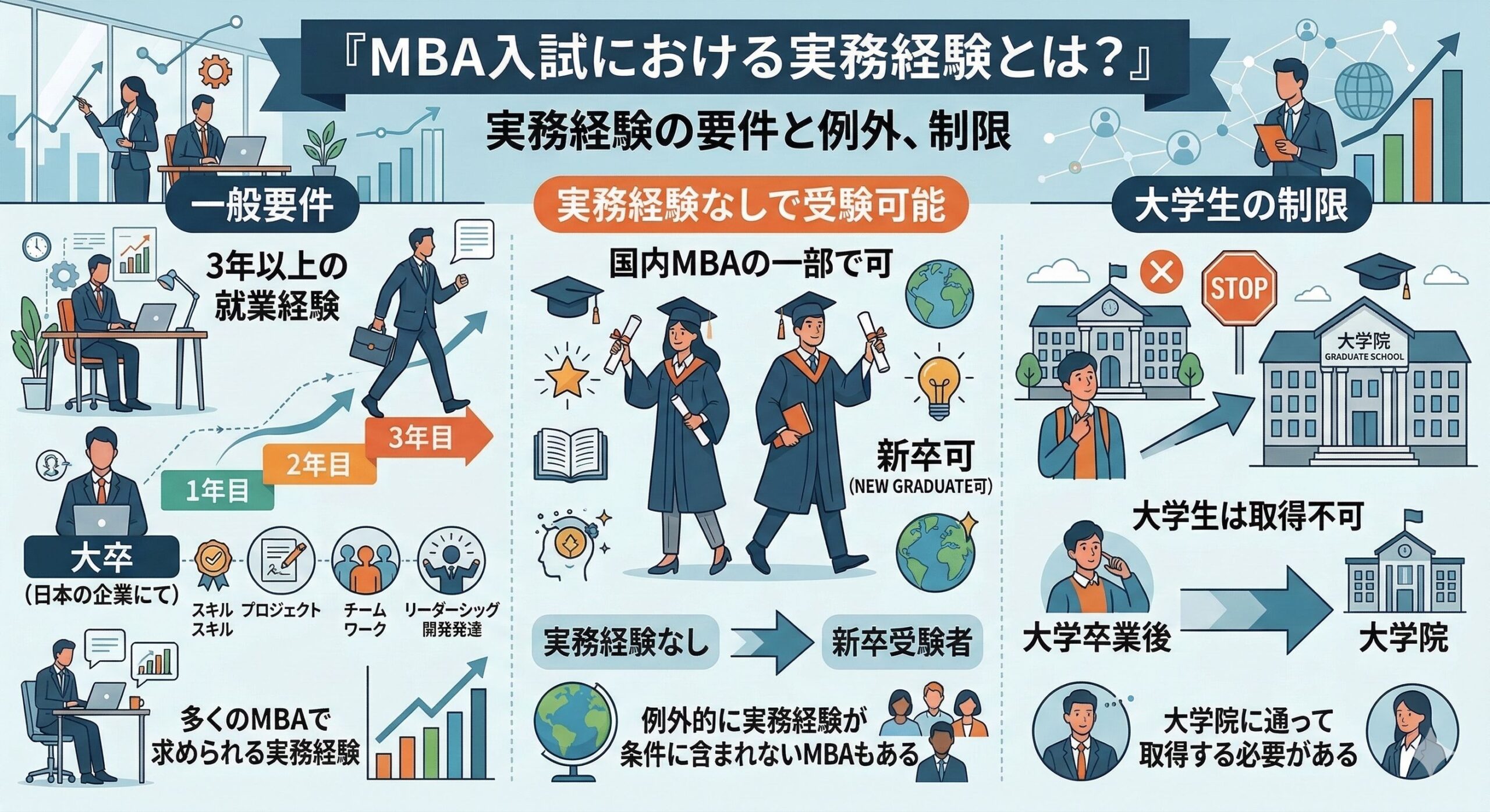 MBA入試における実務経験とは?新卒や大学生でも受験可能?