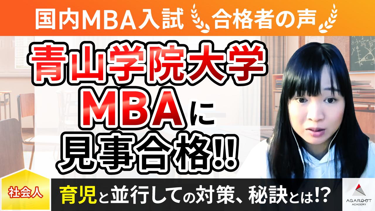 子供がいるため、通学が難しくオンラインサポートが充実したところを探していた。アガルートアカデミーのテキストが分かりやすいのと、飯野先生の説明が分かりやすかった。ブログの記事もビジネススクールの特徴などを分かりやすく説明されていて、MBAの情報収集に参考にしていました。またアガルートアカデミー公式YouTubeの合格者インタビュー動画もたくさんあってとても参考になりました。個人的に飯野先生の説明が非常にわかりやすく、大学の固い授業の雰囲気ではなく、すっと内容が頭に入るところが好きです。