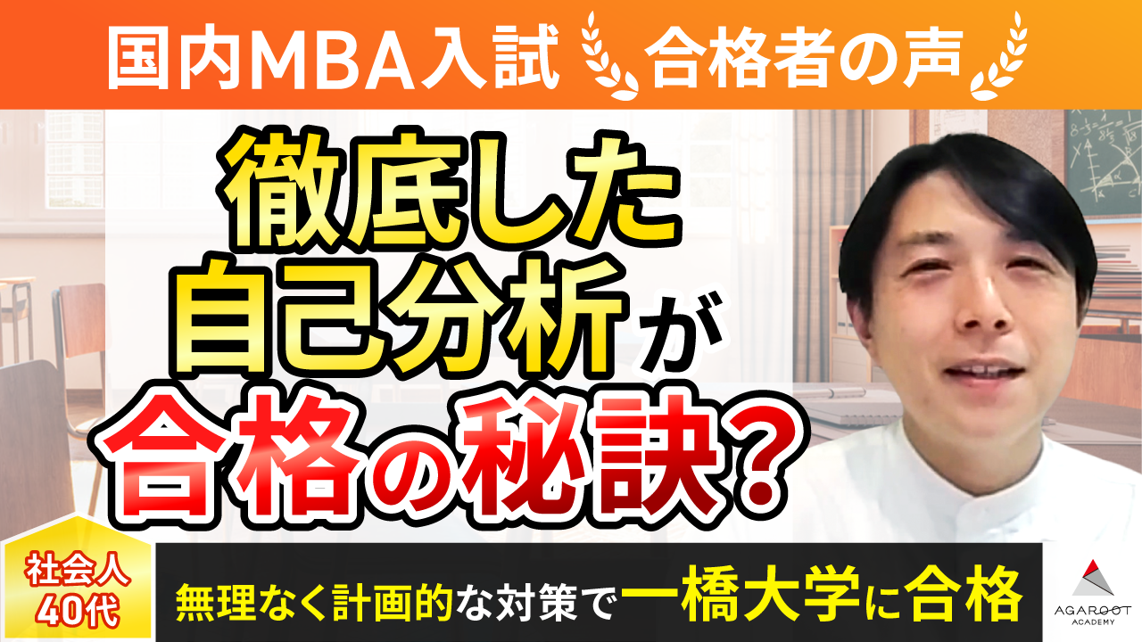 アガルートのカリキュラムは、経営学の基礎講座からはじまり、小論文の基本・大学院別講座、出願書類の書き方や面接対策講座など非常に充実している上に、出願書類の添削を無制限に受けられる点に惹かれました。