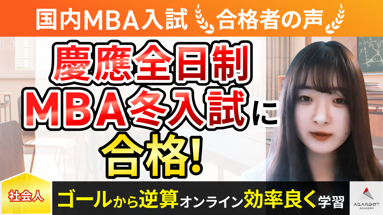 さらに、様々な予備校を比較検討する上で、YouTubeやオンラインの記事などでMBAに関する情報を飯野先生が発信されていましたので、受講内容にも安心感を持てたことでアガルートアカデミーを選択いたしました。