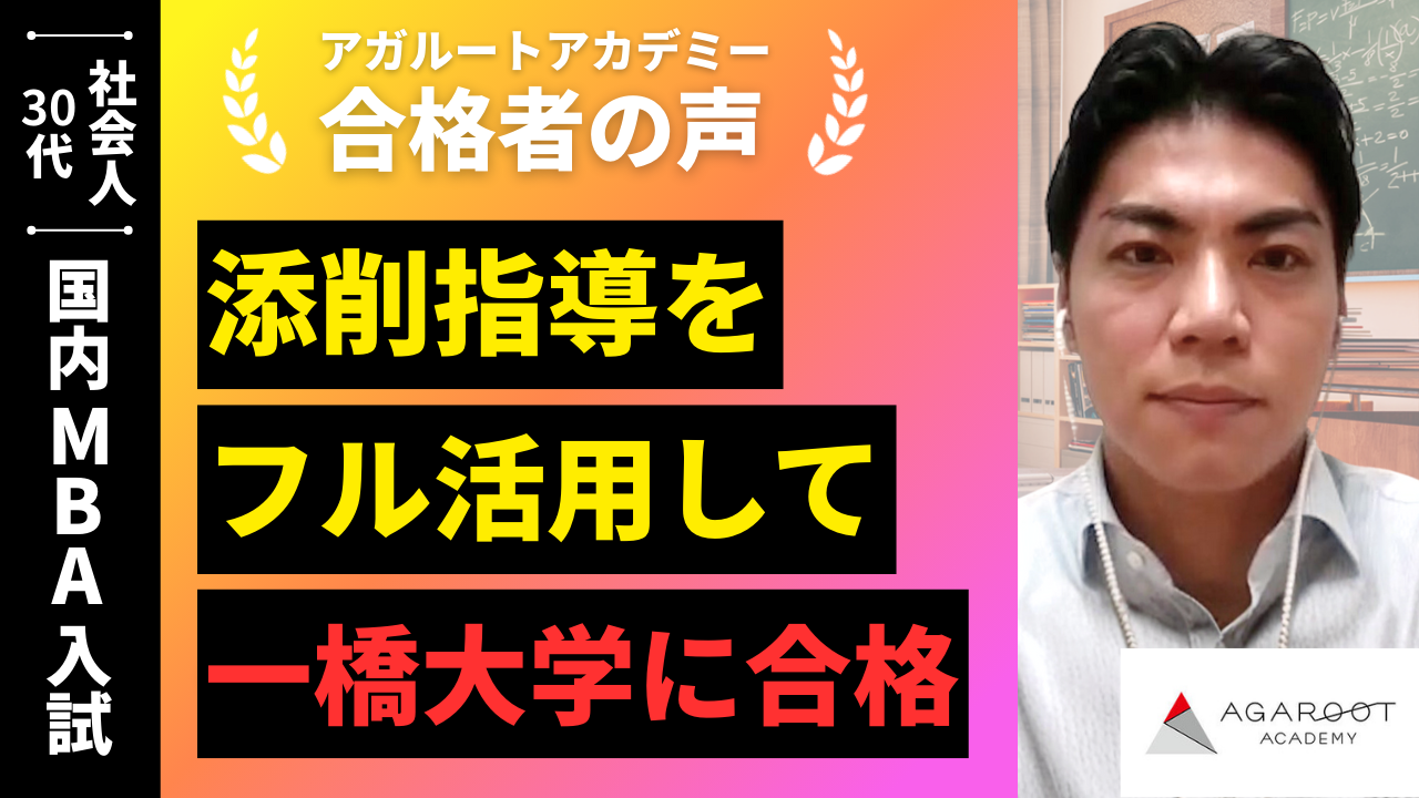 MBA受験は大変な挑戦ですが、計画的に準備を進めることで必ず道は開けます。まず、自分の目標を明確にし、それに向けた具体的な計画を立てられることをお勧めします。数ある予備校の中でも、アガルートアカデミーの講座は非常に充実しており、講師の皆様も非常に熱意をもって懇切丁寧に指導頂けることがとても心強かったです。最後に、自信をもってリラックスした状態で試験に臨んで頂ければと思います。皆様のご健闘を心より祈念しております。頑張ってください!