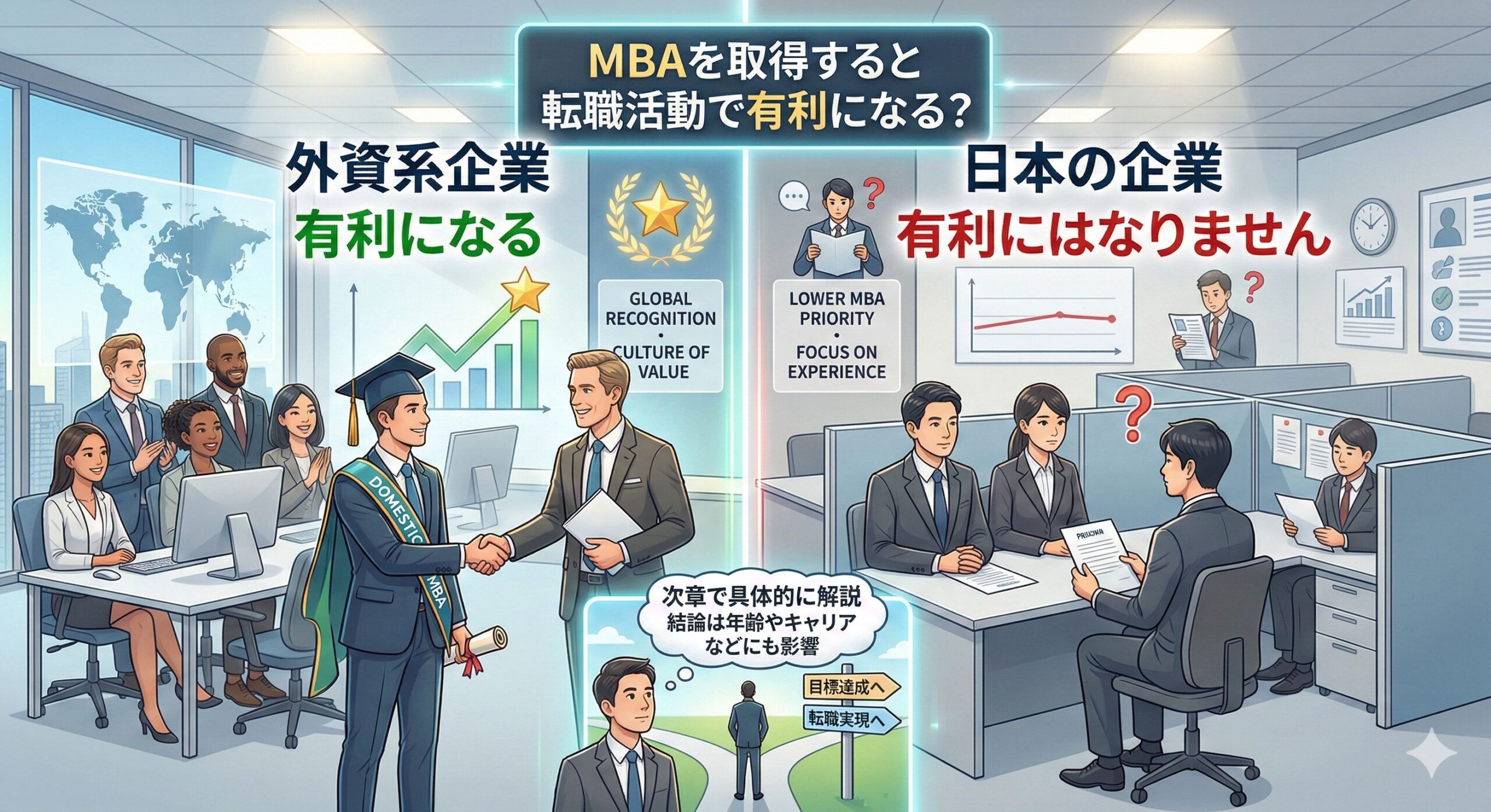 国内MBAの取得が転職に有利にはたらくか。結論から申し上げますと、外資系企業やコンサルティング業界、一部の新興日本企業では極めて有利になりますが、日本の伝統的な大企業では評価されにくいのが現実です。