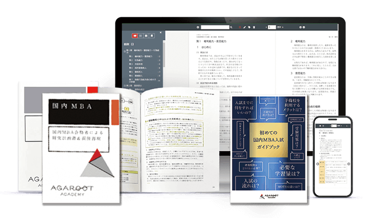 合格体験記+フルカラーテキスト+一部講義動画+研究計画&面接レポート+初めての国内MBA入試ガイドブックを無料プレゼントします!
