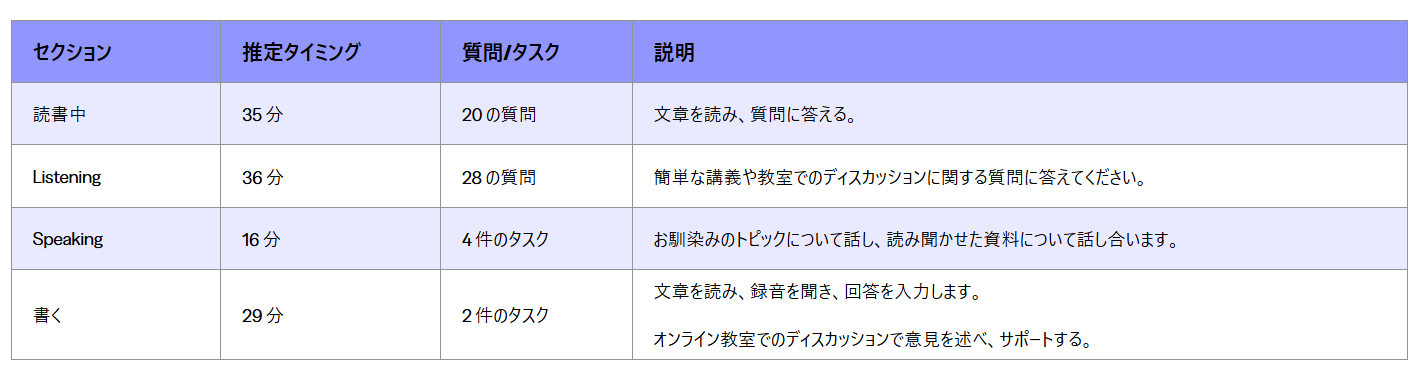 リーディングセクションは、アカデミックな環境で使われるような資料をどれだけ理解できるかの評価をする内容になっています。