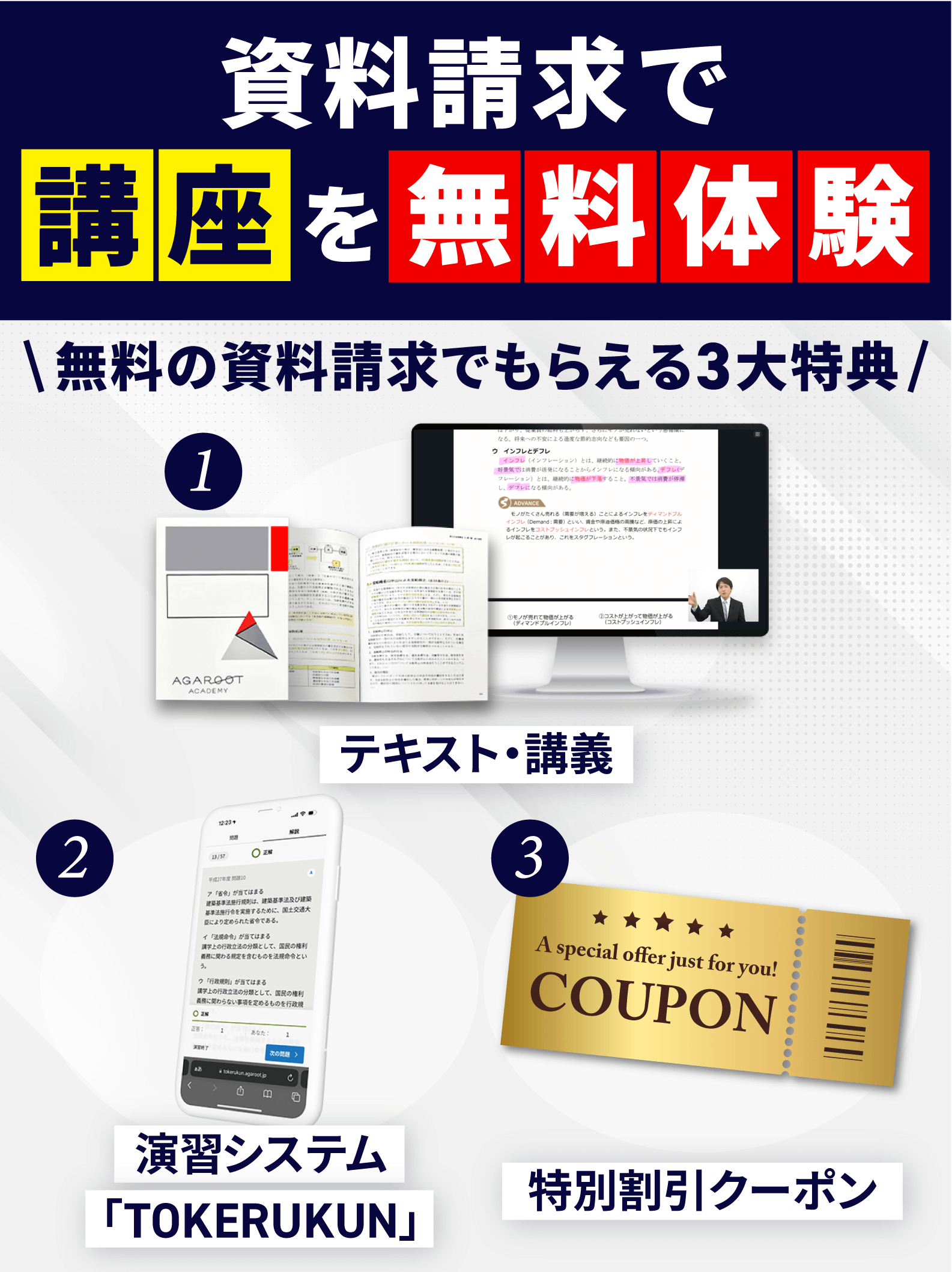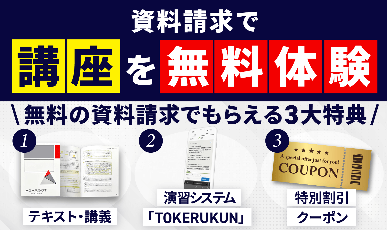 そんなときは、全額返金制度のある「アガルート」がおすすめ。合格すれば「実質無料」で受講でき、非常にお得です。
