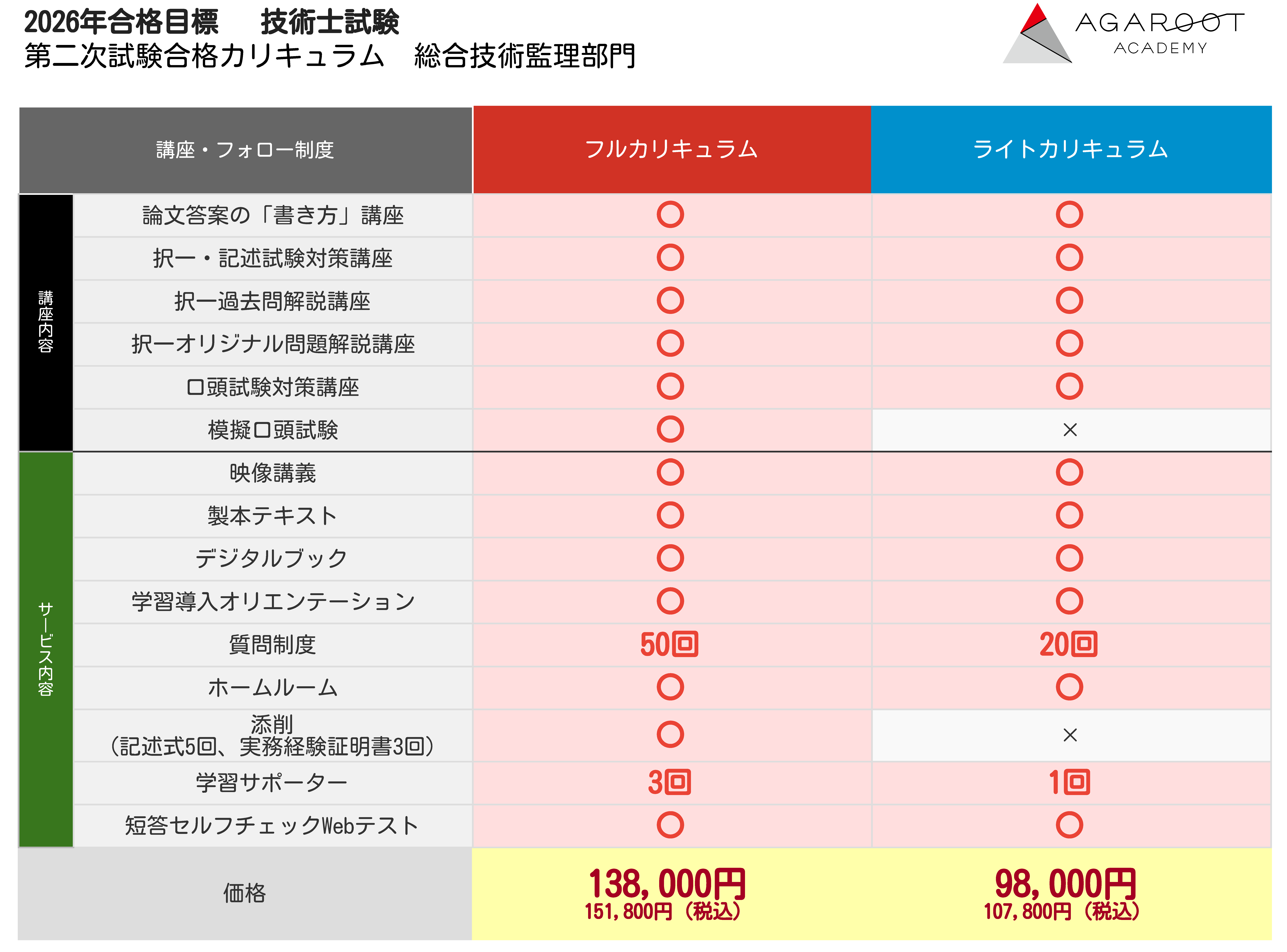 技術士試験|【2026年合格目標】第二次試験合格カリキュラム 総合技術監理部門(フル・ライト)