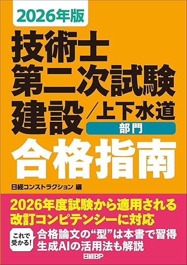 「技術士第二次試験 建設/上下水道部門 合格指南」(日経BP)は、論文スキルを上げたい方におすすめです。
