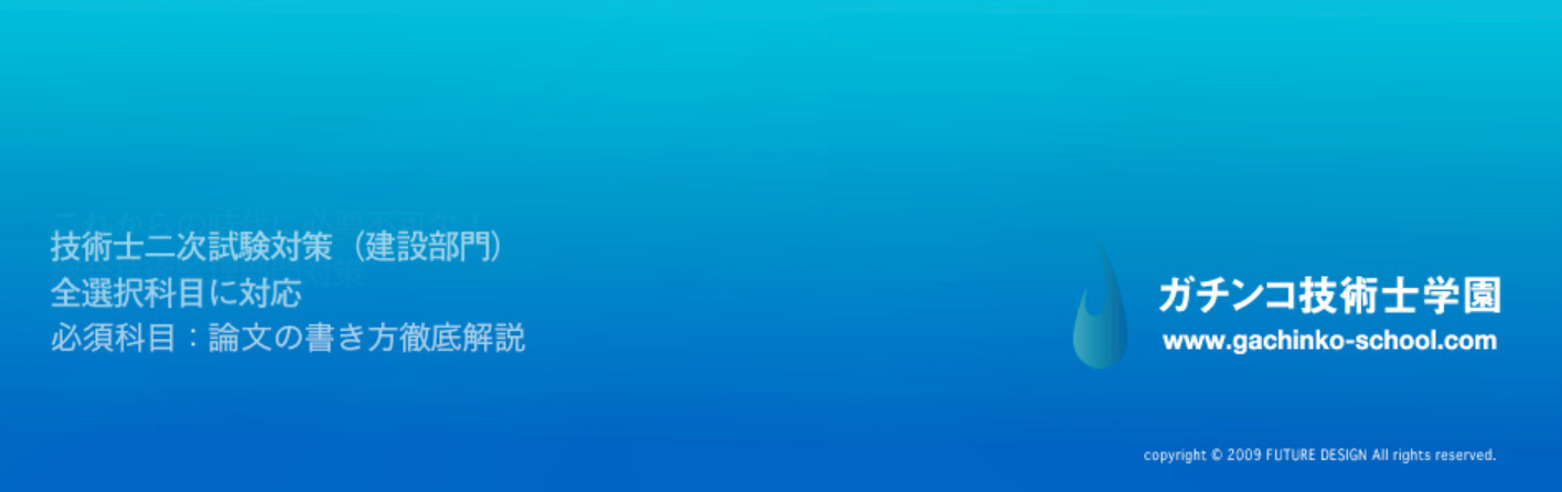 | ガチンコ技術士学園 | 建設部門:58,000~248,000円 上下水道部門:45,000~128,000円 総合技術監理部門:68,000~168,000円 | 一次試験:13,000円~15,000円 | 一部門に関する講師数が特化 | 過去問や問題集には模範論文例有 | A判定になるまで無制限/ 前年度二次試験対策講座受講生には割引価格で提供 |