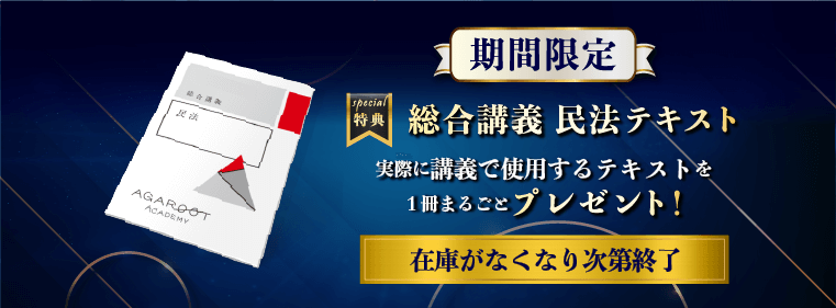 民法テキストのまるまる1冊プレゼントは在庫がなくなり次第、予告なく終了となります。