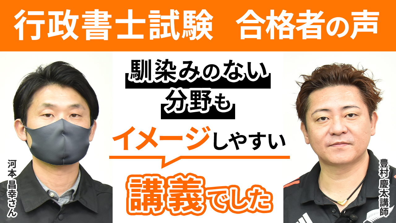 行政書士の仕事には試験で得る知識はもちろん必要でありますが、実地では依頼者により同じ申請案件でもケースバイケースで柔軟な頭が求められる部分があるかと思います。その点で豊村講師は実際の場面を想定できるように堅苦しい条文などもイメージしやすく解説していただけた部分が大変良かったです。