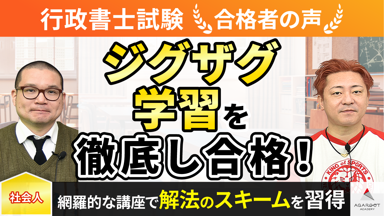 今回、アガルートの講義を受け1度で合格できました。自分が努力したことはもちろんですが、その努力することを上手に引き出してくれたのは豊村先生の楽しく面白い講義があったためです。本当にありがとうございました。
