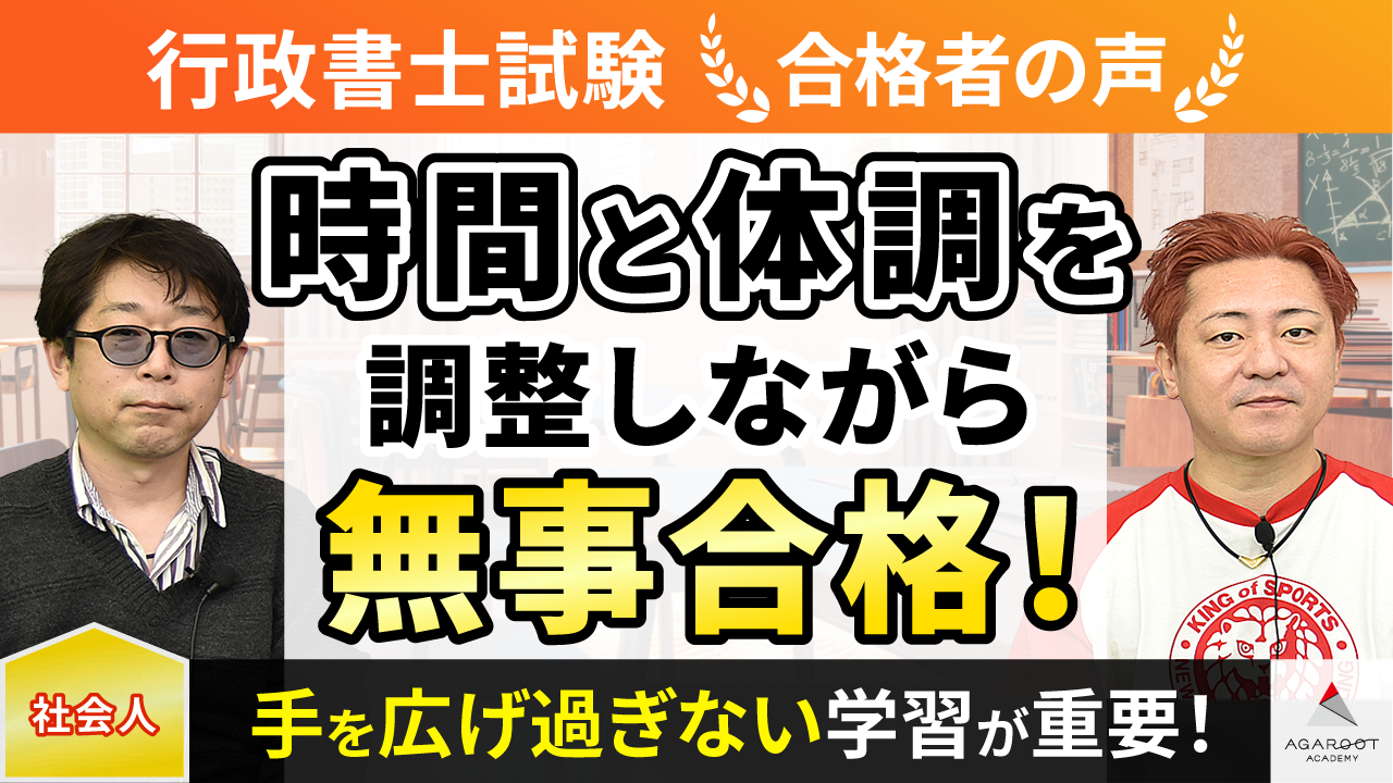 合格者の声|自分の時間と体調を調整しながら、アガルートのテキストに絞って無事合格! 若松 賢一さん