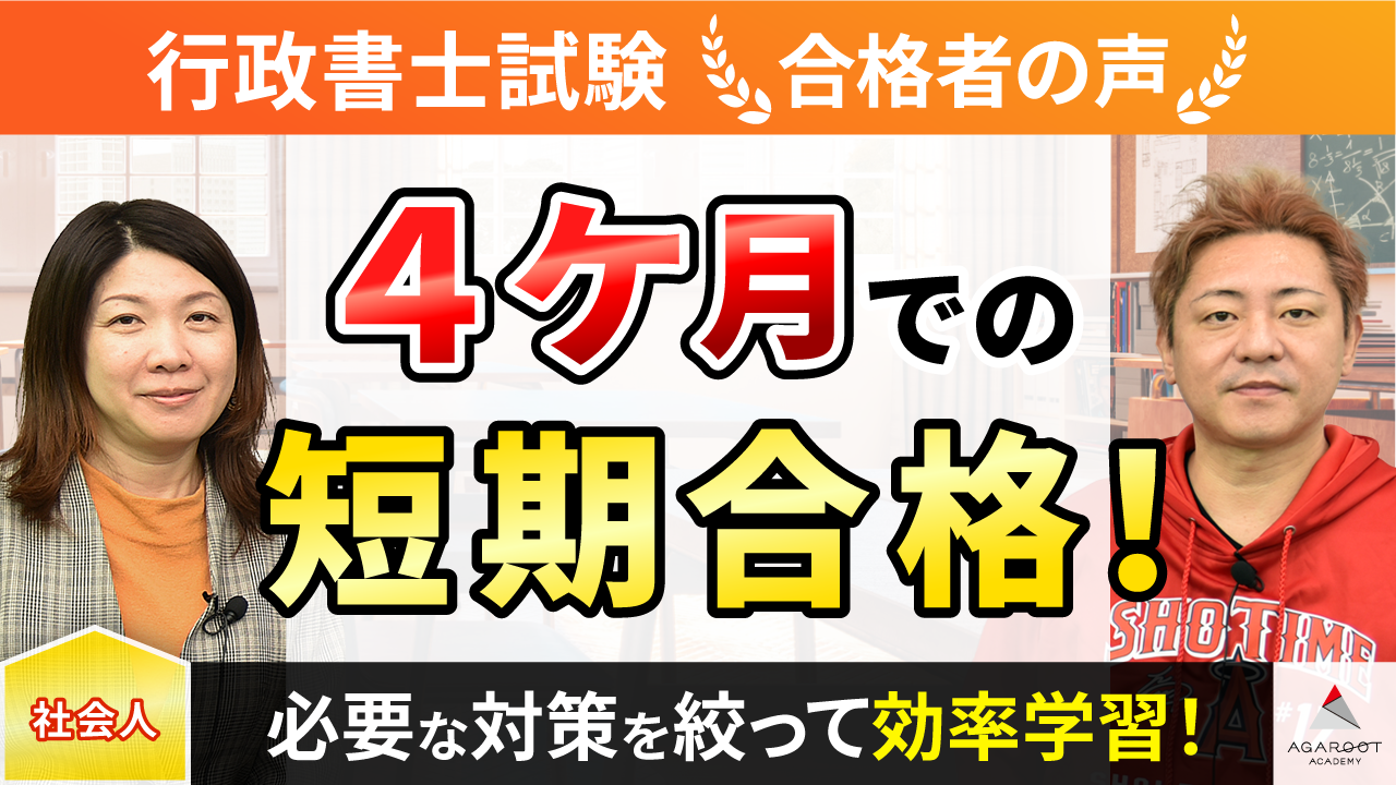 また3年前の行政書士試験で不合格になって以来、まったく勉強に手を付けていませんでしたので、とくに行政法、一般知識は1から勉強し直さなければいけませんでしたが、それがまた億劫で…。そんな時にアガルートの豊村講師の動画を見て、すごく講義が分かりやすかったのと、合格特典のことを聴き、「これなら効率的に勉強ができるし、勉強に身が入る!」と思いました。合格したら全額返金は魅力的です(笑)